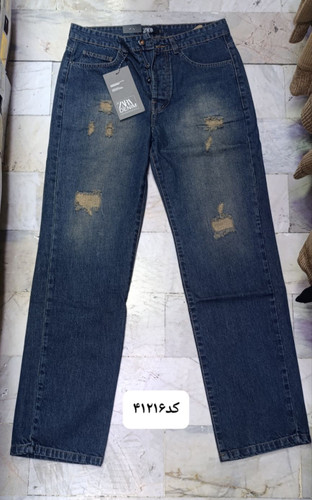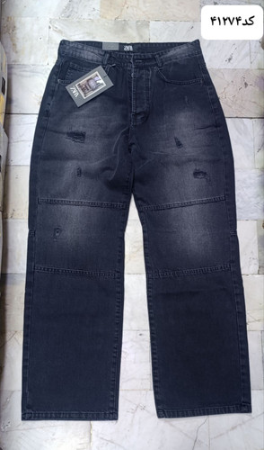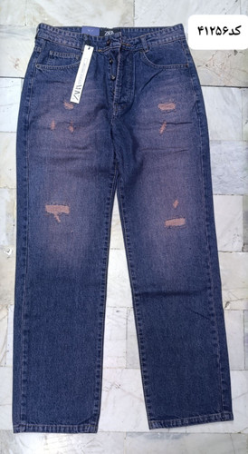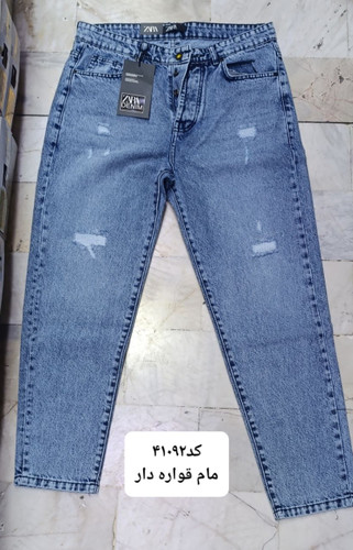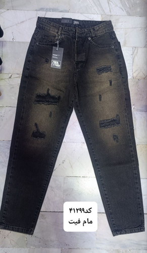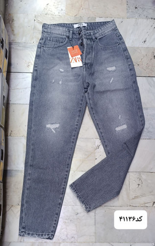 شلوار لی مردانه مام فیت کد 41136 زارا زاپ دار سایز ریز