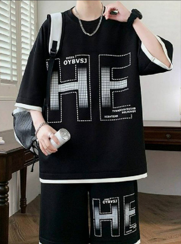 ست تیشرت شلوارک مردانه ماکان مدل لش/باکسی