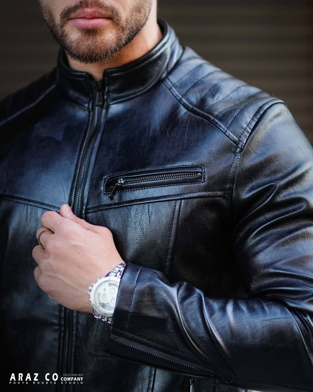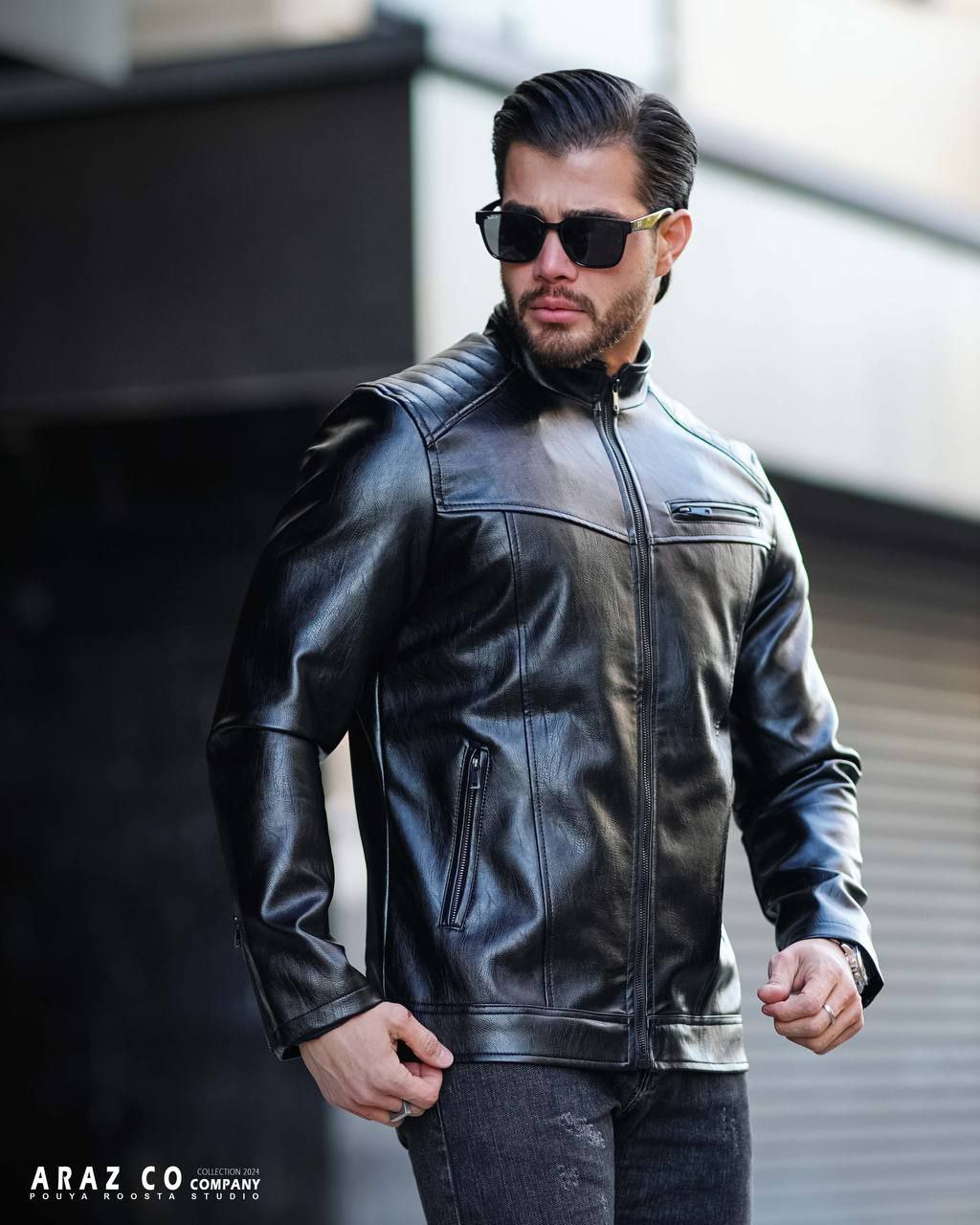 کت چرم مردانه آراز مدل اسپرت جلو زیپ دار